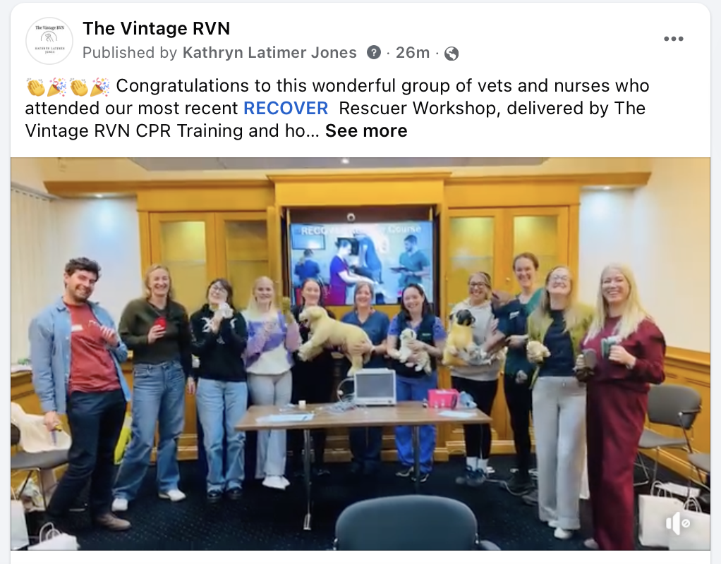 We offer CPR training courses, including the RECOVER Rescuer Certification®, specifically designed for veterinary professionals.